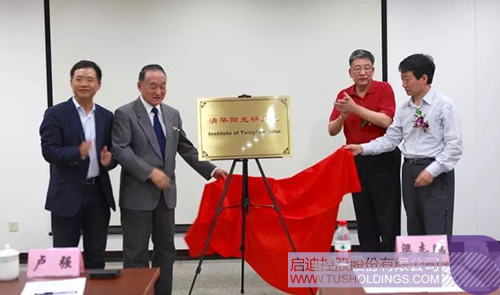 從左至右(時(shí)任):?jiǎn)⒌峡毓煽偛猛鯘?jì)武、清華大學(xué)教授盧強(qiáng)院士、中國(guó)可再生能源學(xué)會(huì)副理事長(zhǎng)朱俊生、國(guó)家能源局新能源和可再生能源司副司長(zhǎng)梁志鵬為清華陽光研究院成立揭牌