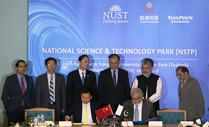 2015年6月27日,啟迪控股與巴基斯坦國立科技大學(xué)(NUST)戰(zhàn)略合作協(xié)議簽字儀式在巴基斯坦首都伊斯蘭堡舉行。巴基斯坦聯(lián)邦計劃和發(fā)展部長Ahsan Iqbal先生,巴基斯坦高等教育委員會主席Mukhtar Ahmed 教授,中國駐巴基斯坦特命全權(quán)大使孫衛(wèi)東先生,NUST校長Asghar先生及其來自學(xué)校和各院系的負(fù)責(zé)人,來自微軟、Oracle、GE、Volvo等跨國公司巴基斯坦公司的CEO和巴基斯坦各主要媒體的代表共計100多人出席了簽字儀式。啟迪控股董事長、時任總裁王濟(jì)武先生代表啟迪控股在合作協(xié)議上簽字。