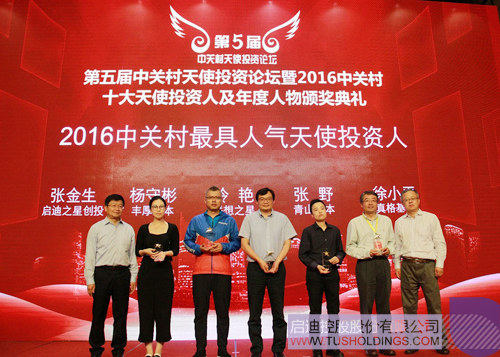 ▲ 啟迪控股副總裁、啟迪之星董事長張金生(左四)當(dāng)選“2016中關(guān)村最具人氣天使投資人”
