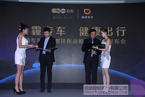 隨后,亞都環保與滴滴簽署戰略合約。亞都環保總裁龍林向滴滴出行高級副總裁付強贈送亞都環保車載凈化器,雙方希望以這臺車載凈化器為開端,在短期內,實現北京首批近三千輛“無霾專車”上路,而對乘客來說,這些附加值全都是免費享受。同時,雙方希望,在最快的時間里,讓每一輛專車都配上亞都環保車載凈化器,都變成“無霾專車”。