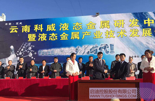 2015年12月22日,啟迪控股通過子公司云南啟迪攜手中宣液態(tài)金屬建立全面長效合作機(jī)制,共同組建液態(tài)金屬研究中心,構(gòu)建液態(tài)金屬產(chǎn)學(xué)研平臺,在液態(tài)金屬科技研發(fā)與科技應(yīng)用、為液態(tài)金屬產(chǎn)業(yè)發(fā)展提供科技服務(wù)、液態(tài)金屬產(chǎn)業(yè)的人才培養(yǎng)與輸送三個方面重點開展工作。