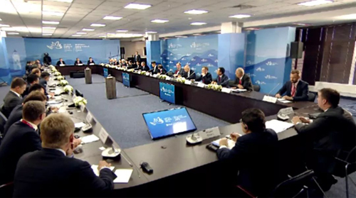 2018年9月11日,俄羅斯第四屆東方經濟論壇在遠東城市符拉迪沃斯托克舉辦。當日下午,由論壇主辦方邀請的中外企業家代表參加了與普京總統的座談會。王濟武董事長應邀出席,并與其他五位中外企業家在座談會上發言。