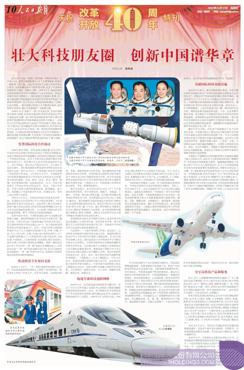 人民日報慶祝改革開放40周年特刊報道:啟迪控股成為享譽世界的戰略新興產業“發動機”