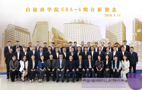 王濟武董事長、李志強書記、王書貴常務(wù)副總裁、蔡曉衛(wèi)常務(wù)副總裁、趙東副總裁與啟迪商學(xué)院EBA-6期學(xué)員合影